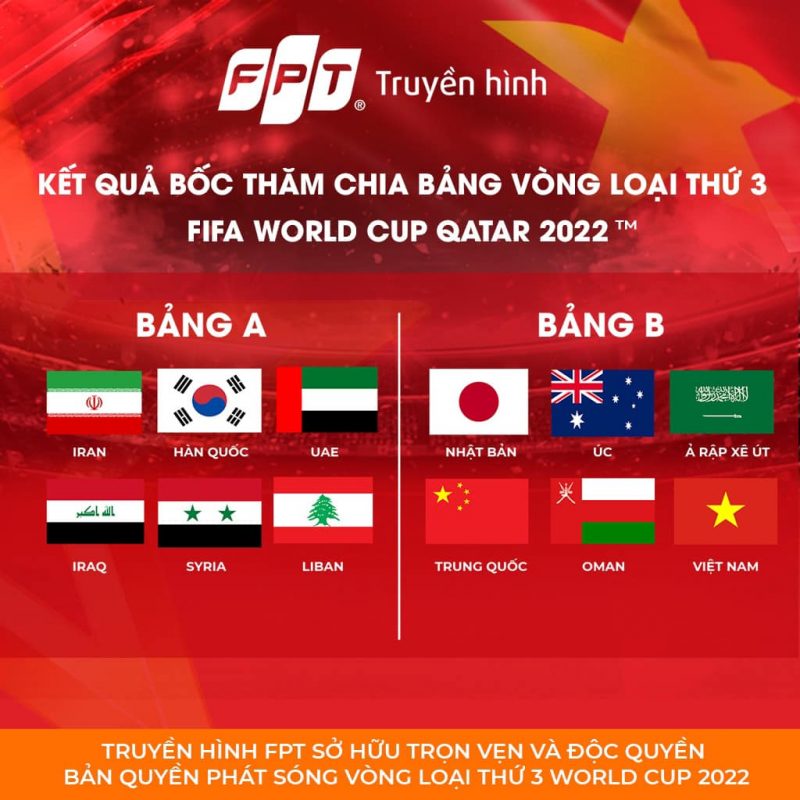 Truyền hình FPT trực tiếp bóng đá Vòng loại World Cup 2022: Việt Nam chung bảng với Nhật, Úc, Trung Quốc